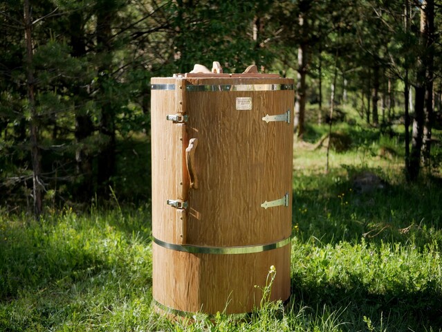 Кедровая бочка (фитобочка) круглая «Профессиональная Богатырская» Это круглая фитобочка из кедра увеличенных размеров с толщиной стенок 45 мм. Подходит для людей высокого роста и крупной комплекции. Фитобочка оборудована откидными створками, дверцей и отверстием для головы. Во время парения человек сидит внутри кедровой бочки, а голова находится снаружи. Благодаря этому исключается возможность перегрева. Подлокотники из кедра, встроенные ручки на створках и двери делают эксплуатацию более удобной. Парение в фитобочке благотворно влияет на организм в целом: повышается иммунитет, выводятся шлаки и токсины, улучшается работа органов тела и состояние кожи.