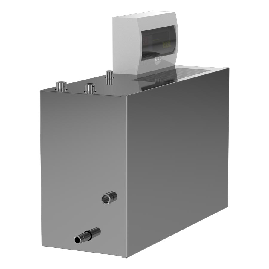 На электронном табло отображается температура в бочке, возможность программирования работы парогенератора (отсрочка старта, время процедуры и пр.).