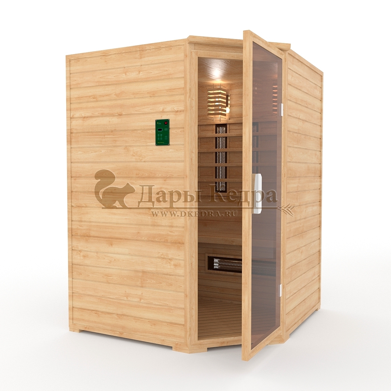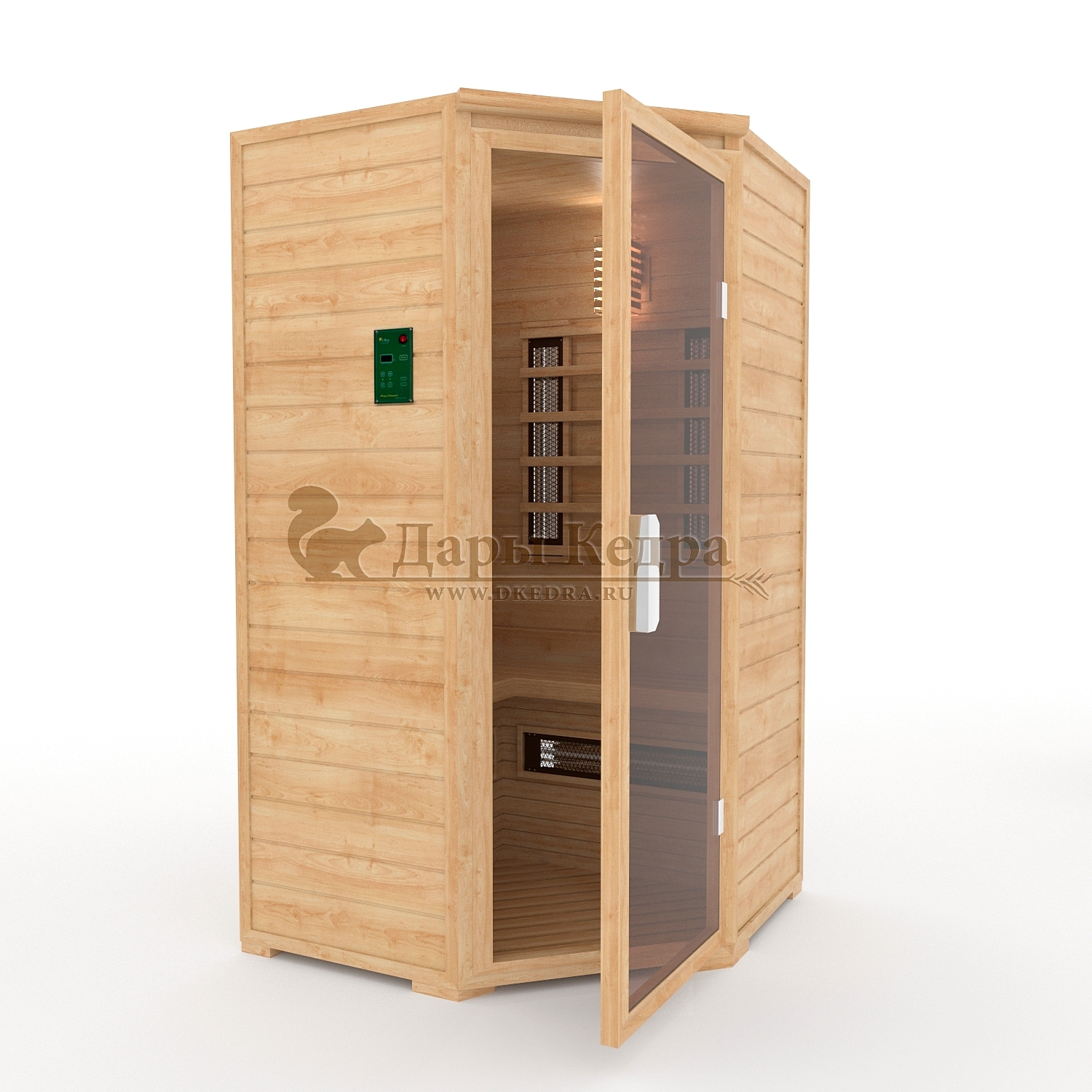 • Двухместная угловая инфракрасная сауна кабина из кедра и липы с карбоновыми излучателями Это специально оборудованная кабина из липы для прогрева тела человека сухим теплом. Воздух в таких парных не нагревается. Инфракрасные лучи воздействуют на тело, равномерно прогревая мышцы, суставы и органы. Карбоновые излучатели, встроенные в стены кабины, обладают мягким прогревом, что полностью исключает возможность ожога. Работает кабина за счет электричества. Установка сауны в угол, позволяет рационально использовать пространство помещения. Подходит как для домашнего использования, так и для коммерции. Обращаем Ваше внимание что в стандартную комплектацию входит трапик для ног, но вы можете его заменить на цельный пол совершенно бесплатно!