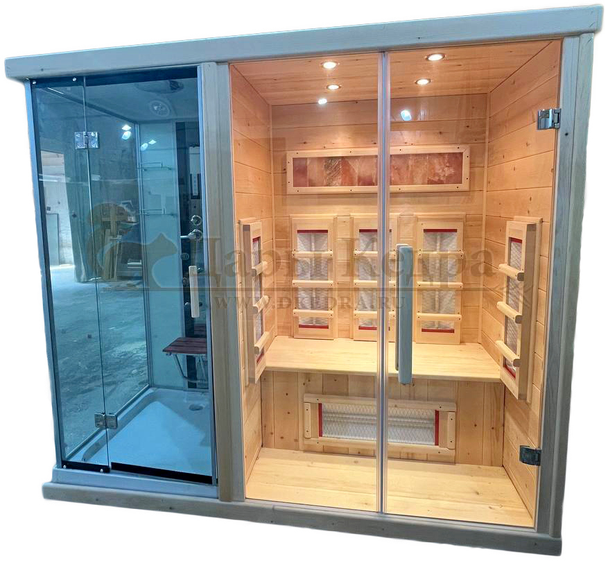 • Трехместная комбинированная сауна из кедра с электрокаменкой Данную модель можно использовать как инфракрасную кабину, так и финскую сауну. Керамические нагреватели отвечают за сухое тепло. Они излучают инфракрасные лучи, которые равномерно прогревают тело человека. Электрическая печь нагревает кабину изнутри и позволяет сбрызгивать камни водой, слегка увлажняя воздух. Цилиндрический парообразователь применяется вместе с электропечью и служит для повышения влажности и образованию пара в сауне. Является доп опцией и оплачивается отдельно! Поочередно используя разные типы нагревателей можно усилить процесс очищения организма. Таким образом, шлаки удаляются как из внешних слоев кожи, так и из внутренних тканей.