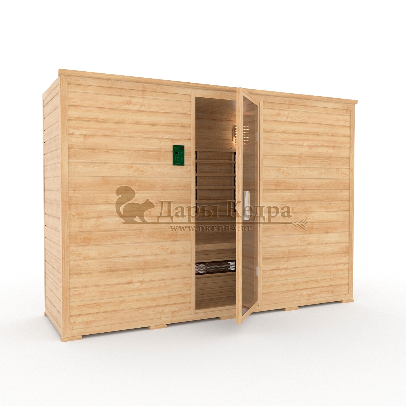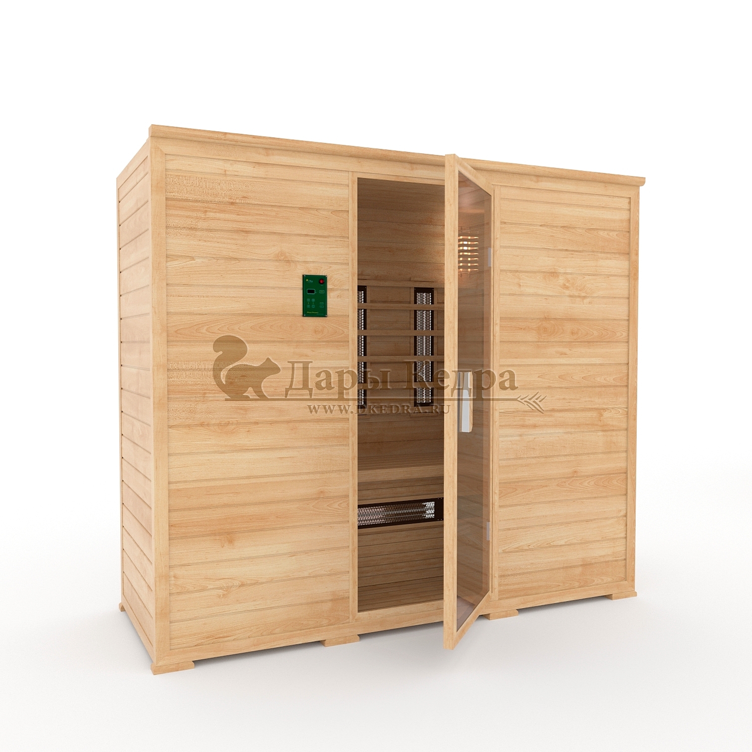 • Трёхместная инфракрасная сауна кабина из кедра с керамическими излучателями Это специально оборудованная кедровая кабина для прогрева тела человека сухим теплом. Воздух в таких парных не нагревается. Инфракрасные лучи воздействуют на тело, равномерно прогревая мышцы, суставы и органы. Керамические излучатели похожи на лампы, имеют высокую температуру нагрева, поэтому защищены противоожоговыми решетками. Тело человека в таких саунах нагревается интенсивнее. Работает кабина за счет электричества. Трехместная инфракрасная сауна с керамическими излучателями подойдет как для домашнего использования, так и для коммерции. Обращаем Ваше внимание, что в стандартную комплектацию входит трапик для ног, но вы можете его заменить на цельный пол совершенно бесплатно! Целебная древесина кедра и инфракрасные лучи благотворно влияют на организм человека в целом. При регулярном использовании инфракрасной сауны укрепляется иммунитет, улучшается кровообращение и состояние кожи, выводятся токсины.