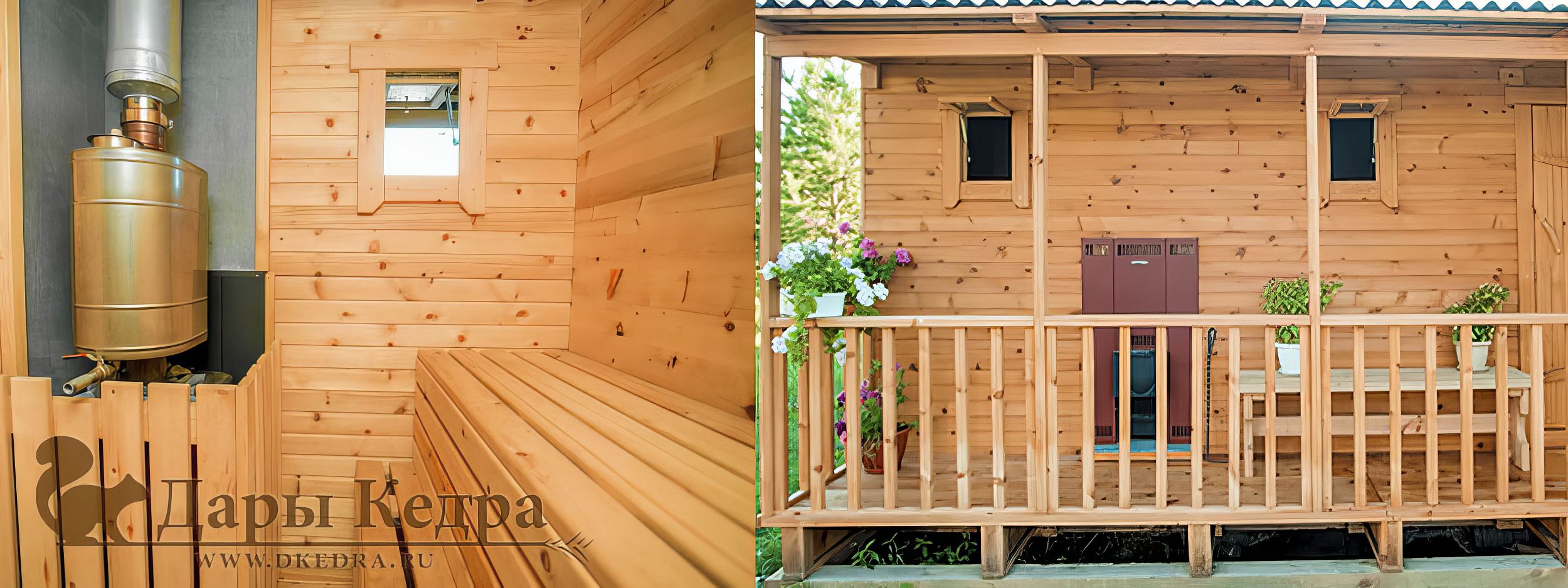 Каркасно-щитовая баня из кедра «Стандарт» с верандой